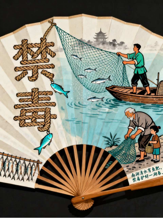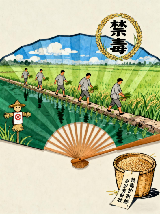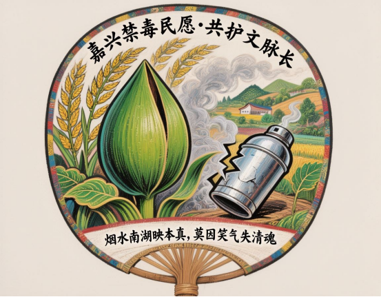 粽叶缠“禁毒”、云纹框“禁毒”、渔网织“禁毒”,画家们辅以“粽香守家园”“禁毒护水乡”的小字注解,让禁毒不再是口号,而是与“守护家庭团圆、水乡纯净、农耕丰收”的情感紧密相连。