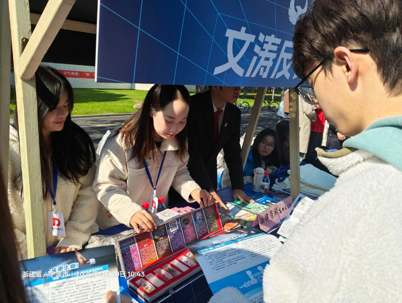 中国禁毒网讯 近日,浙江省宁波市海曙区高桥镇禁毒办联合派出所、司法所、法院、检察院等多部门,走进宁波财经学院开展趣味禁毒宣传教育活动,以“互动+科普”的形式为学子们送上生动的禁毒“必修课”。