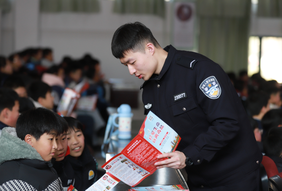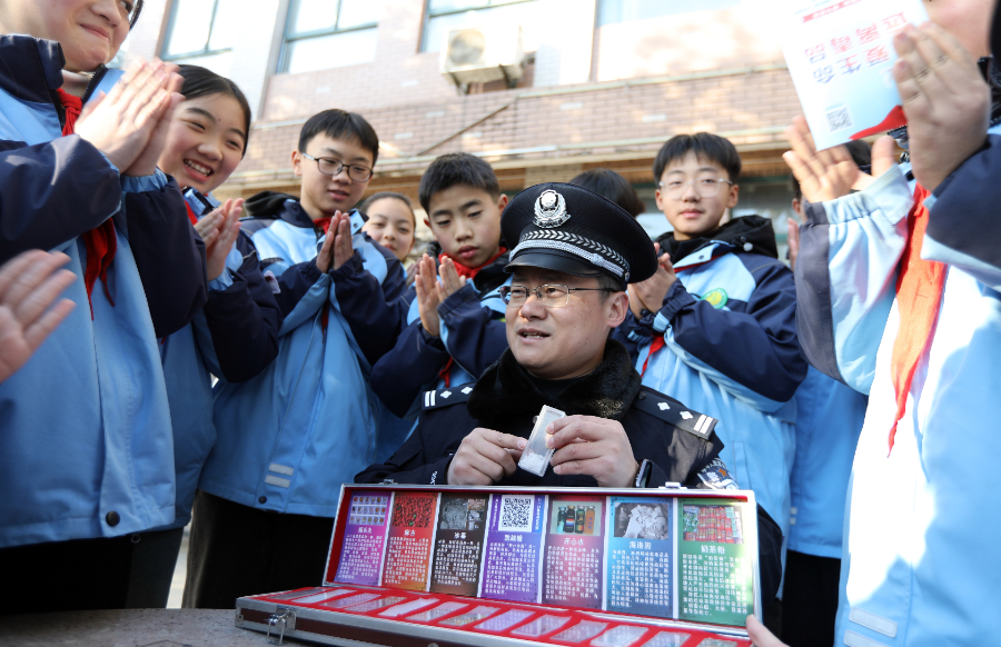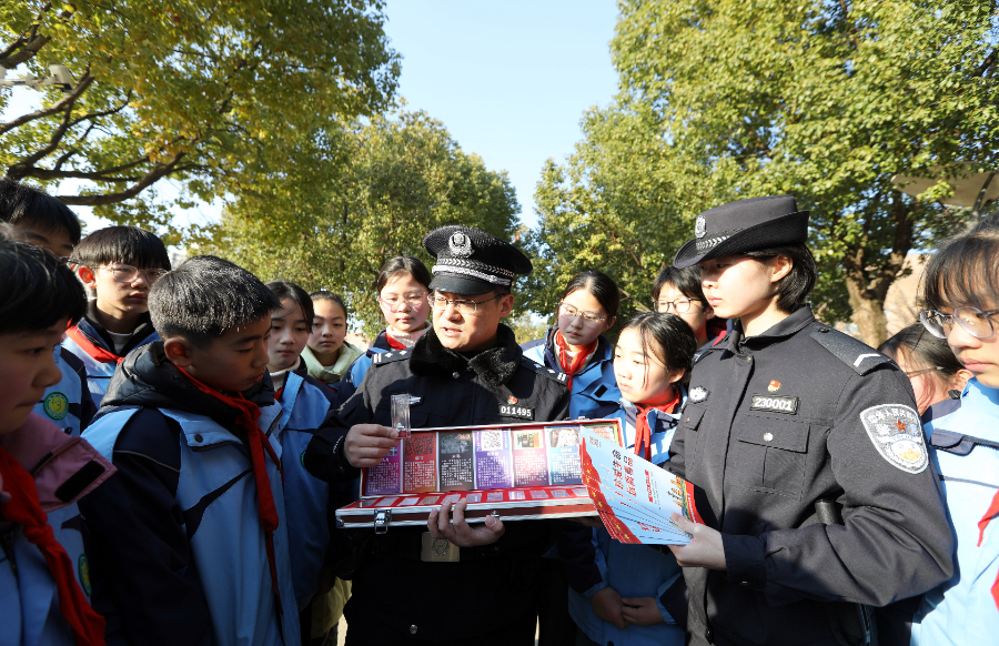 中国禁毒网讯 2026年1月22日,安徽省芜湖市公安局鸠江分局禁毒民警走进芜湖翰文学校,开展“珍爱生命,远离毒品”主题宣传活动。通过宣讲、散发宣传资料、展示毒品模型等多种形式为广大小学生上了一堂生动的禁毒教育课。(摄影:安徽省芜湖市公安局交管支队 陈效宝)