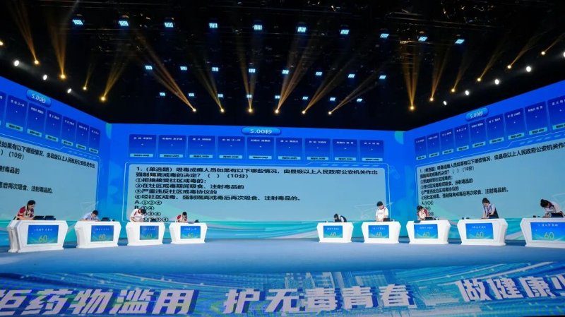 本次竞赛共设置“全民出击”“齐力肃毒”“快乐禁毒”“扫魔除毒”“王者争锋” 五个环节。内容涵盖我国禁毒方针政策、禁毒法律法规、禁毒历史、毒品知识、毒品危害、毒品防范、戒毒康复、毒情形势以及防范青少年药物滥用知识。决赛现场,各代表队选手精神抖擞,沉着应对,在比赛各环节展开了激烈交锋。选手们扎实的禁毒知识储备、敏锐的反应能力与出色的团队协作精神得到了展现。