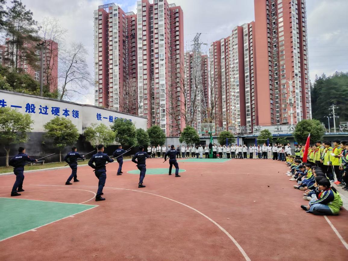 活动伊始,特(巡)警大队以精湛的技战术表演拉开序幕,应急棍、队列训练等实战演练赢得阵阵掌声。随后,警员演示了快速搭建应急帐篷、警用摩托车等现代化警用装备,学生们在民警指导下体验战术头盔、防弹背心等器械,直观感受公安科技的进步与警员日常训练的艰辛。