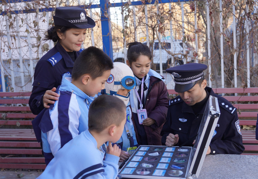 1月15日,新疆阿图什市公安局民辅警在阿图什市第一小学校门前,利用放学时段人流量集中的时机,开展“校园门口禁毒微课堂”活动,进一步加强校园禁毒宣传力度,提升青少年及家长识毒、防毒、拒毒的意识和能力。(记者 潘从武 通讯员 司比努尔·艾克白尔)