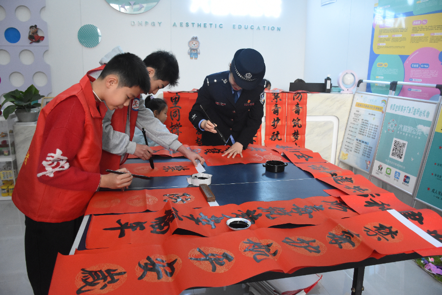 活动开始前,民警向师生讲解毒品危害,传授识毒技巧,指导学生书写禁毒春联。活动现场,师生志愿者挥毫泼墨,“新春防毒不松懈 珠乡守安万事兴”等作品跃然纸上,过往群众纷纷驻足观看。民警借机用方言宣讲“电子烟”“奶茶”等新型伪装毒品的隐蔽危害。在互动问答区,“答对禁毒题领春联”的福利点燃了群众的参与热情。