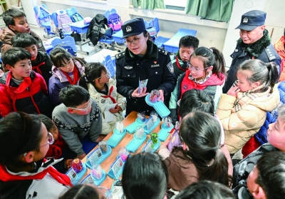 近日,建邺公安分局民警来到莲花实验小学,为孩子们送上禁毒安全教育课。通过展示毒品模型、趣味知识问答等形式,重点科普“邮票”“跳跳糖”等极具迷惑性的新型伪装毒品,提升拒毒防毒意识与自我保护能力。(记者 段仁虎 通讯员 国武 摄)