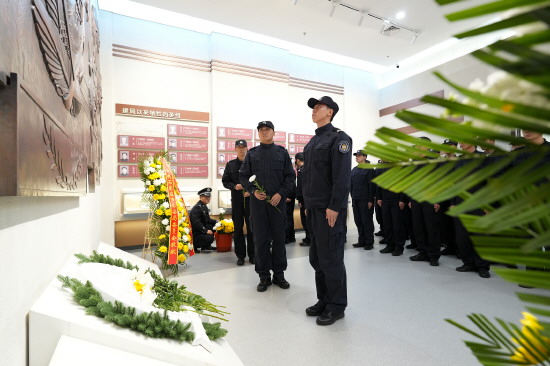 4月1日,新疆维吾尔自治区霍尔果斯市公安局组织民辅警代表前往惠远烈士陵园开展清明祭扫活动,在追思中汲取奋进力量,在缅怀中践行初心使命。图为民辅警代表向公安英烈敬献鲜花。记者 潘从武 本报通讯员 宋印锐 摄