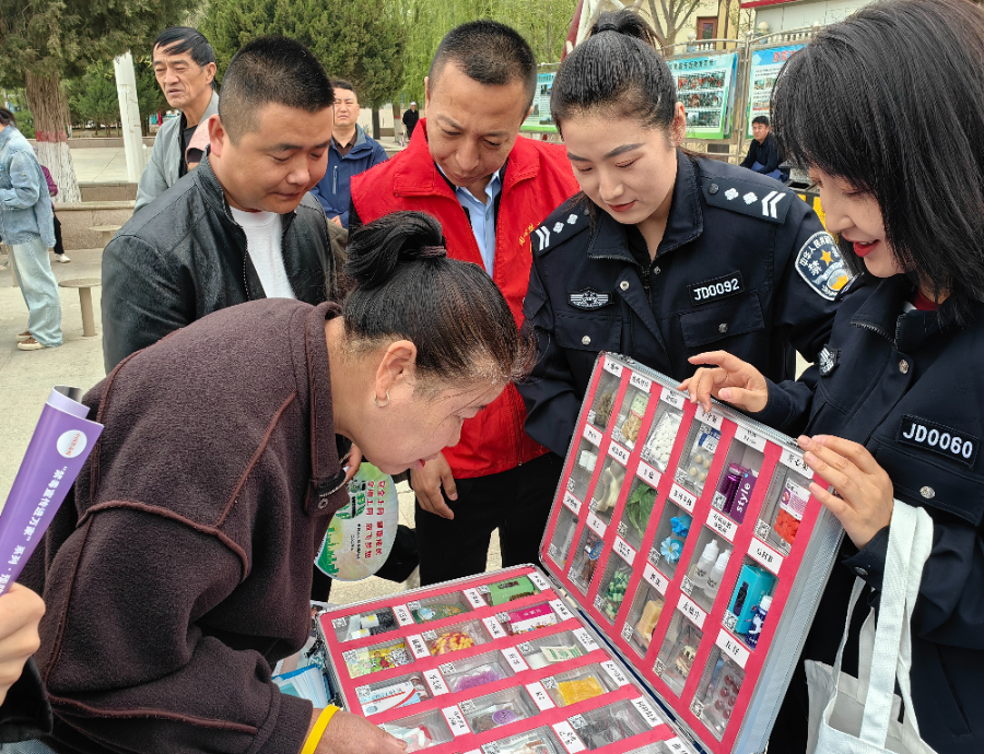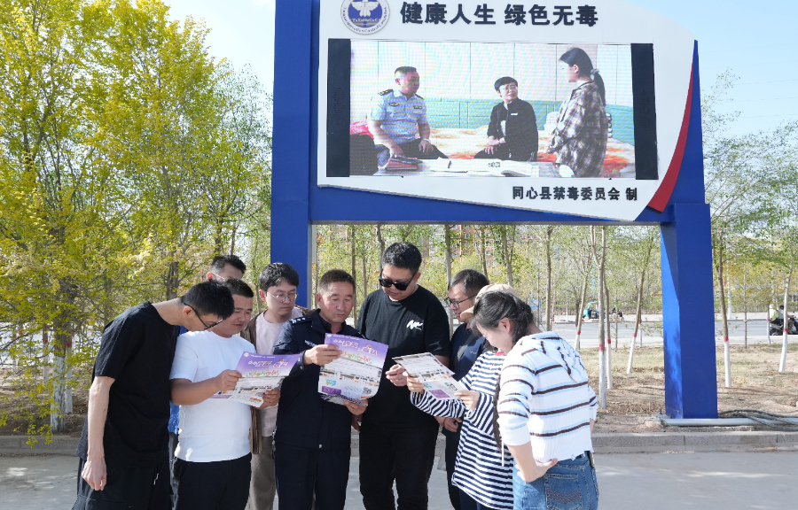 在新时代文明实践广场,同心县禁毒办联合多部门开展主题宣传,通过设立咨询台、摆放禁毒展板、发放宣传手册、展示仿真毒品等形式,向过往群众细致讲解毒品危害、禁毒法律法规及国家安全相关知识,现场解答群众疑问。