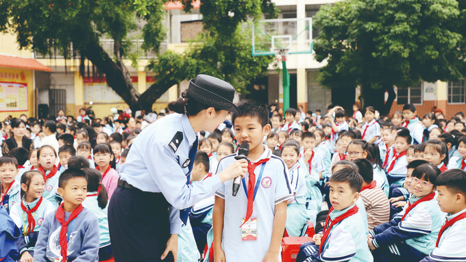 课堂上,民警用趣味案例讲解反诈知识,通过展示仿真模型普及禁毒常识,聚焦道路交通场景强调安全要点,帮助学生提升法治意识。