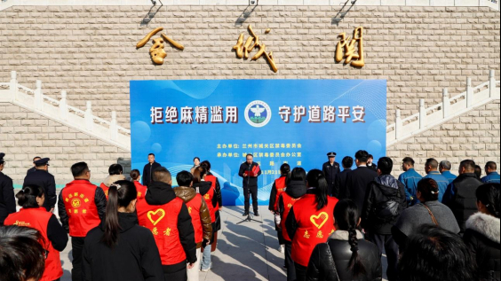 "活动现场,兰州奔马汽车出租有限公司代表作了倡议发言,工作人员为参加活动的群众讲解禁毒知识,与会领导一同为出租车张贴“禁毒车贴”,让出租车成为城市禁毒宣传的“流动名片”。"